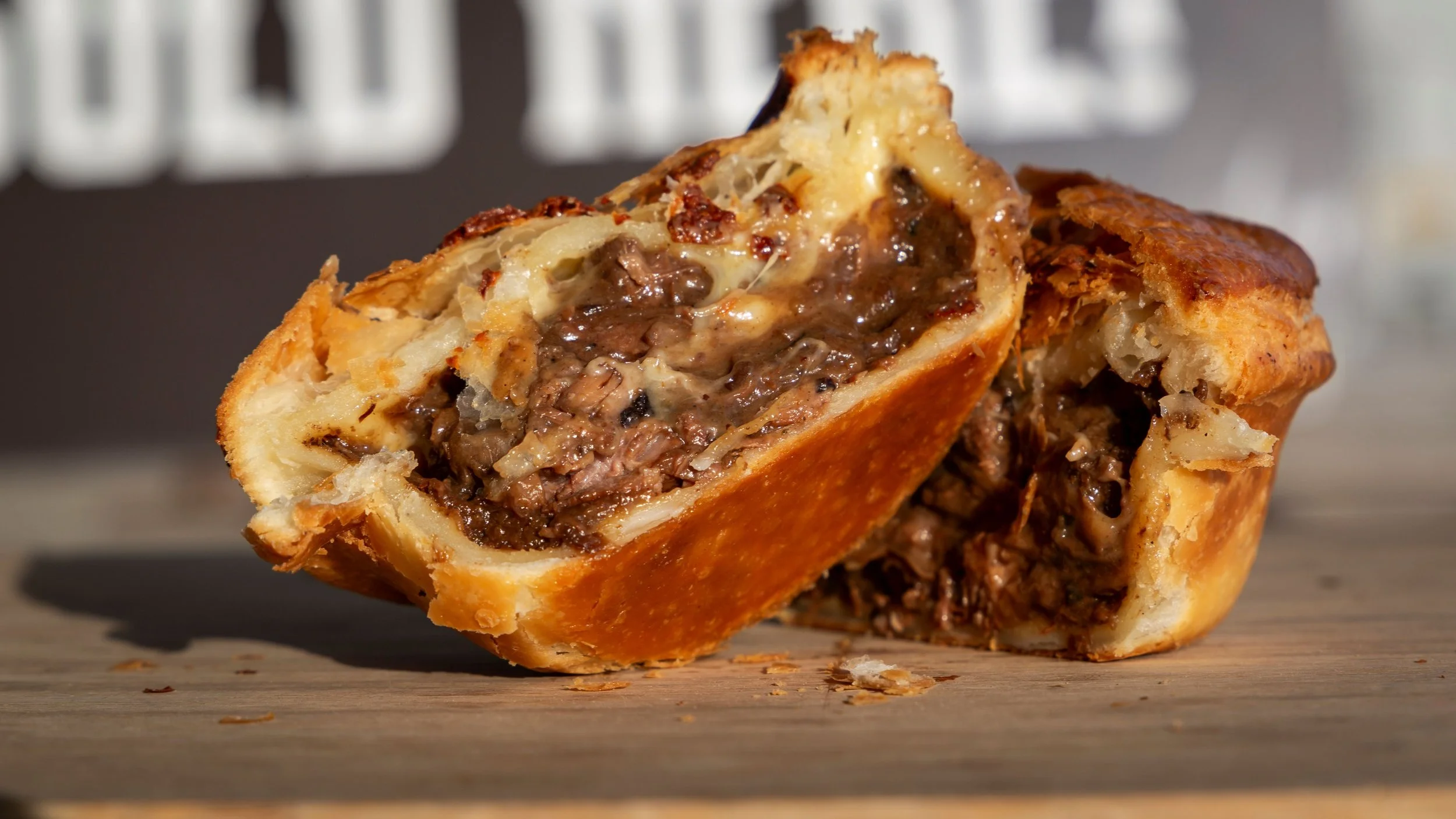 Classic flavors such as steak and cheese, mince and cheese, and bacon and egg are among the favorites. These pies are often enjoyed on the go, wrapped in grease-proof paper, making them the perfect comfort food for a quick snack or a satisfying meal.